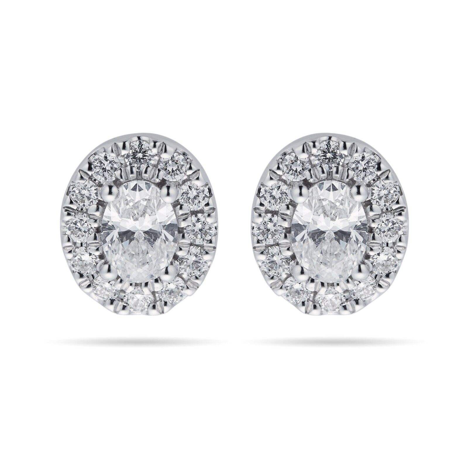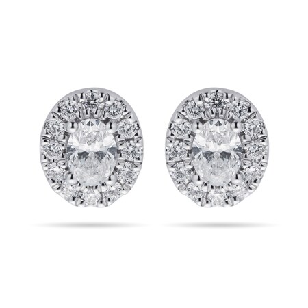 Goldsmiths 18ct White Gold 0.70cttw Oval Cut Halo Stud Earrings