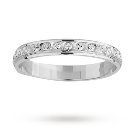 Goldsmiths 3mm Ladies Diamond Cut Wedding Band In 18 Carat White Gold