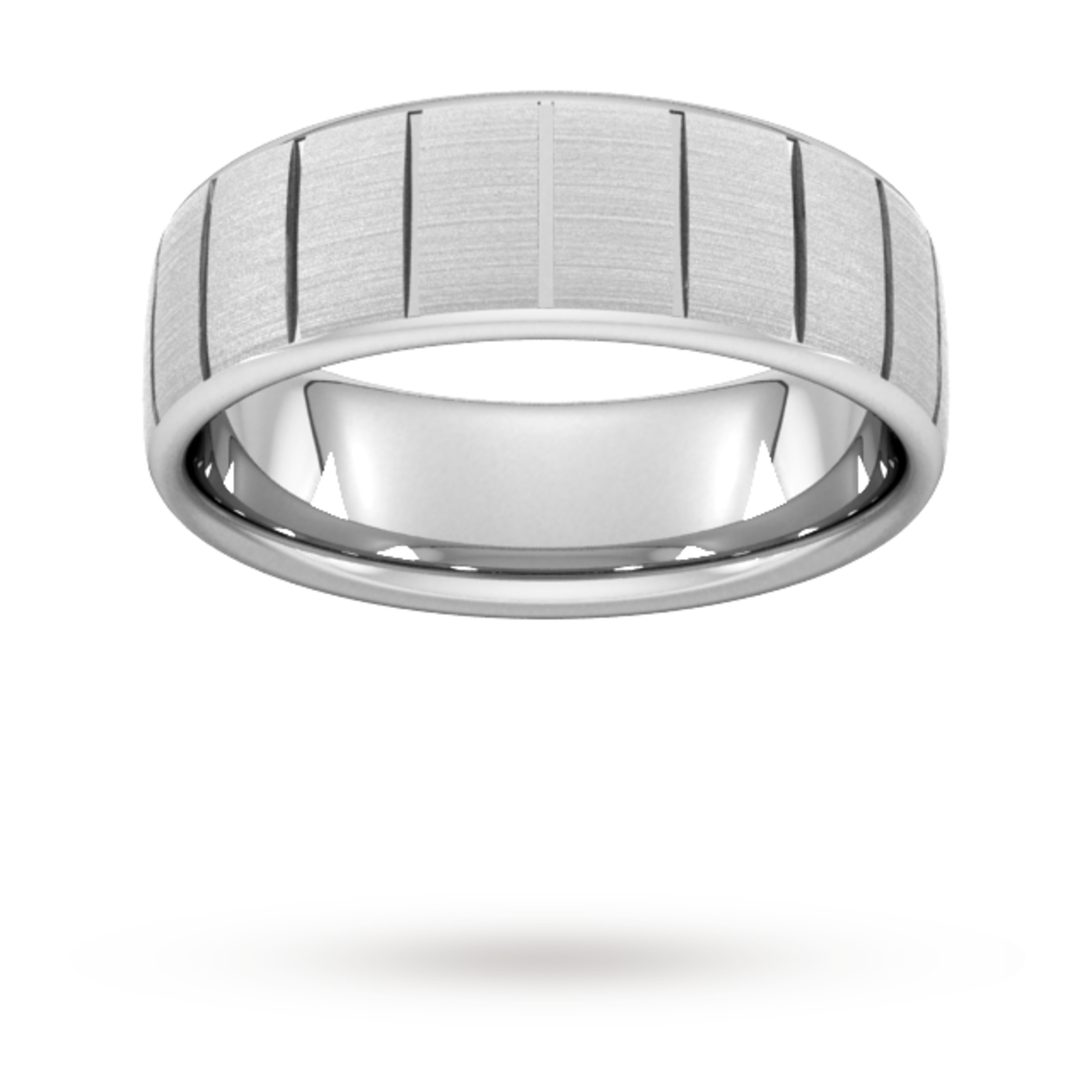 Goldsmiths 7mm D Shape Standard Vertical Lines Wedding Ring In 18 Carat White Gold