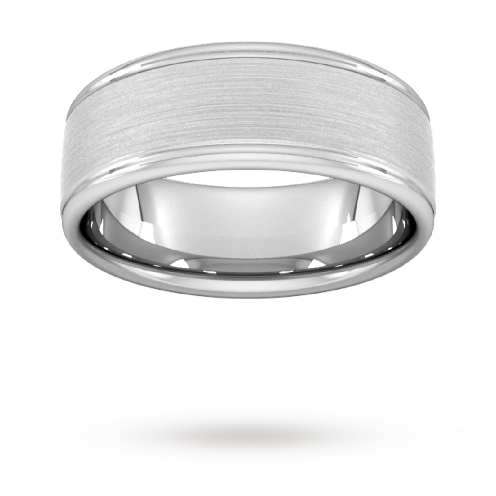 Goldsmiths 8mm Slight Court Standard Matt Centre With Grooves Wedding Ring In 18 Carat White Gold