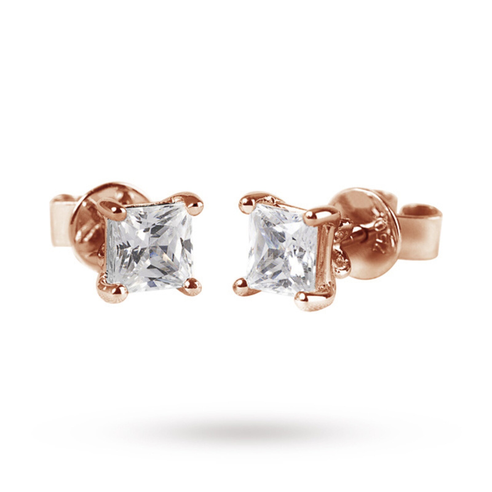 Goldsmiths 9ct Rose Gold 0.15ct Princess Cut Stud Earrings