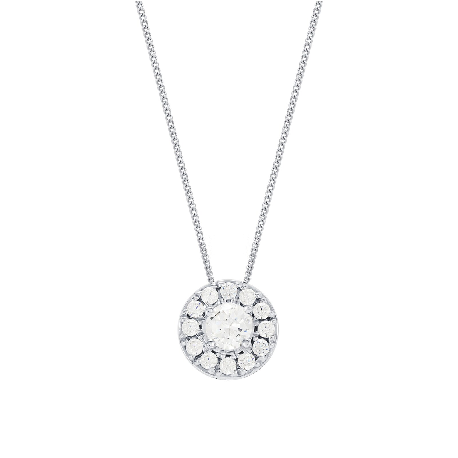 Goldsmiths 9ct White Gold 0.10ct Diamond Illusion Halo Pendant