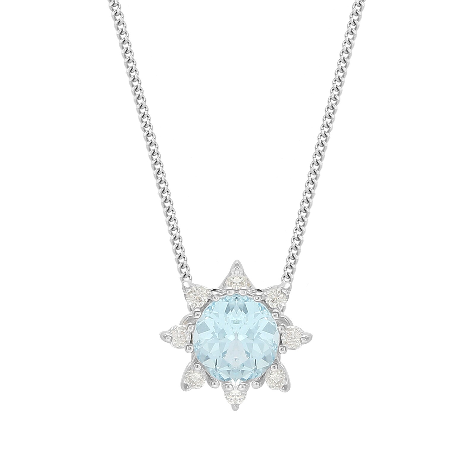 Goldsmiths 9ct White Gold Blue Topaz & Diamond Flower Halo Pendant