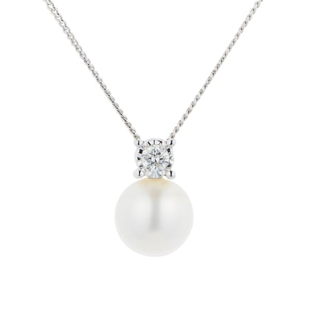 - 9ct white gold freshwater pearl and diamond pendant necklace