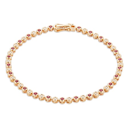 Goldsmiths 9ct Yellow Gold Ruby and Diamond Tennis Bracelet