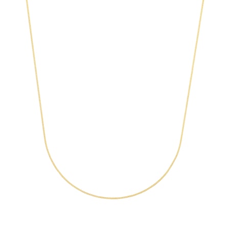 Delicate design and high quality workmanship come together in this 42cm long necklace with curb linking. Ideal for pendants, the 9ct yellow gold chain clings to the skin and shines as brightly as the stars.