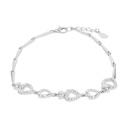 This delicate ladies bracelet with integrated hearts is made of 925 sterling silver. Who can say no to such a delicate piece of jewellery with its imaginative structure and love element?