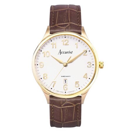 Accurist Classic Brown Leather White Dial Mens Watch MPN: 73001