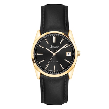 Accurist Everyday Black Leather Black Dial Ladies Watch MPN: 74001