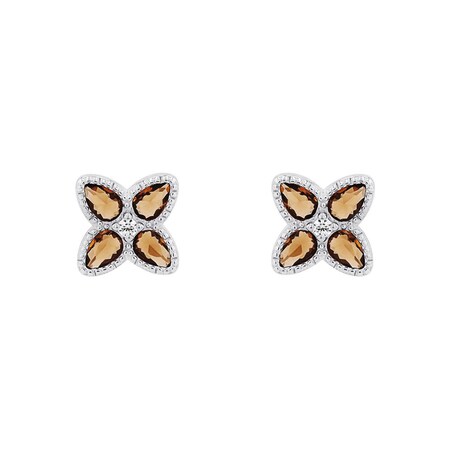 AMOR Sterling Silver Glass Stone Flower Stud Earrings MPN: 2100055