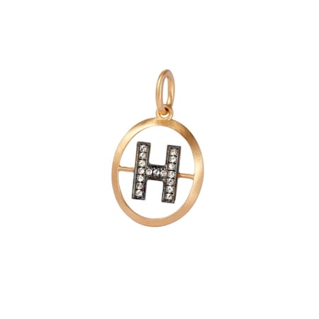 A celebrity favourite, crafted from solid 18ct yellow gold with a soft satin finish, the H pendant has a beautiful texture and warmth. The letter itself is formed with .08 carats of silver diamonds, micro-pave set into black rhodium, giving this traditional and sentimental piece a uniquely modern feel.