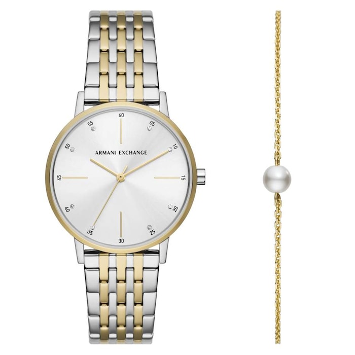 Armani Exchange Lola Three-Hand Two-Tone Stainless Steel Watch and Bracelet Set