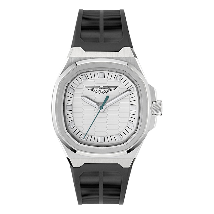 Aston Martin Stainless steel Case, Silver Dial, Black Silicone Strap