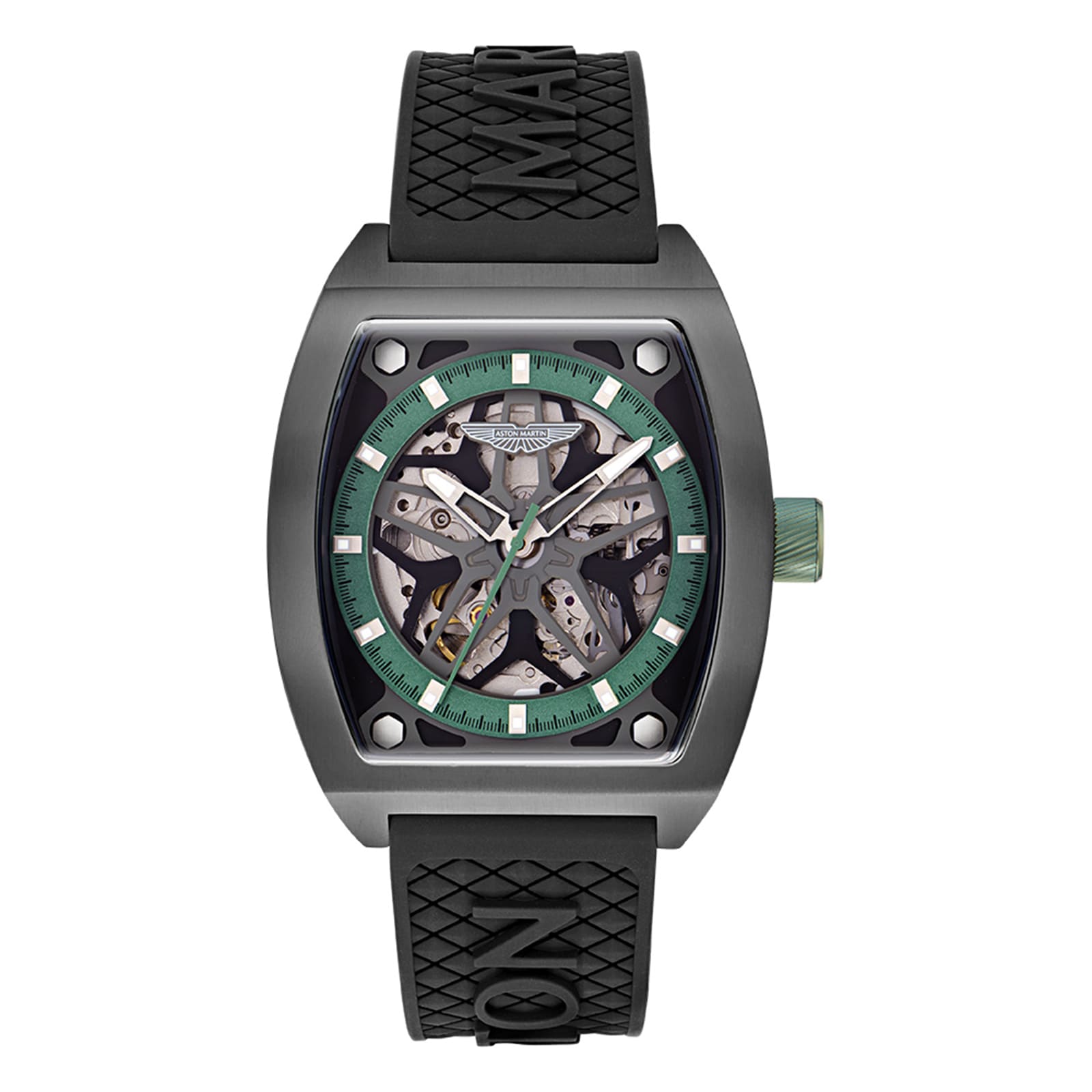 Aston Martin IP Gunmetal stainless steel Case, Podium Green Dial, Black Silicone Strap