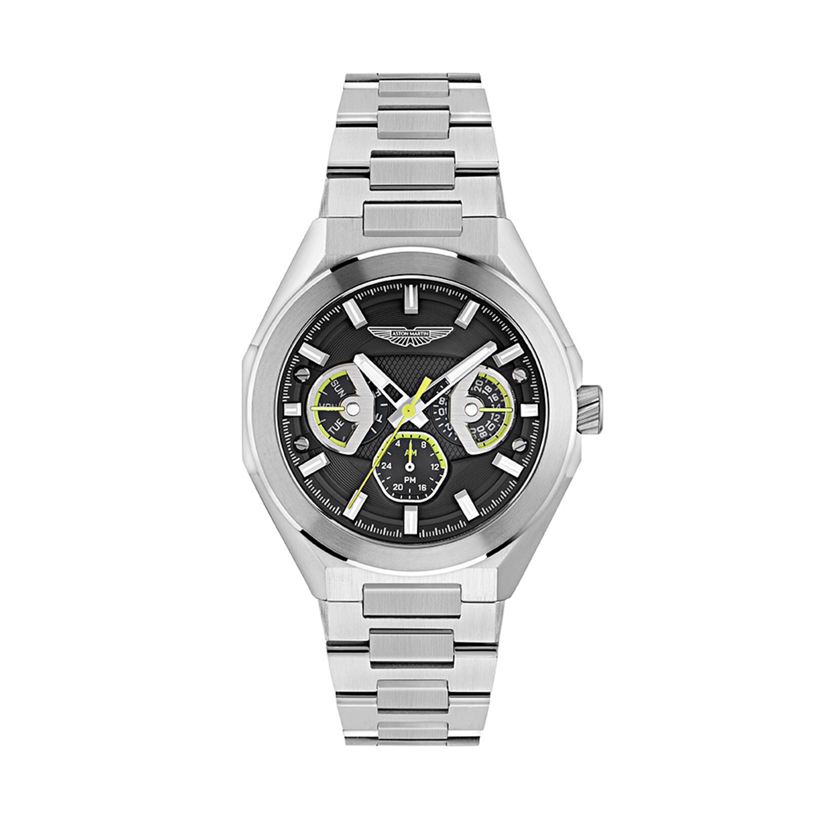 Aston Martin Stainless steel Case, Black Dial, stainless steel Bracelet