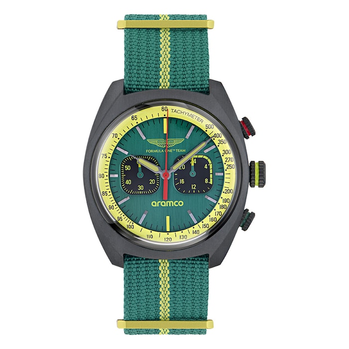 Aston Martin formula 1IP Black Carbon Case, Podium Green Dial, Podium Green and Yellow Nato Strap