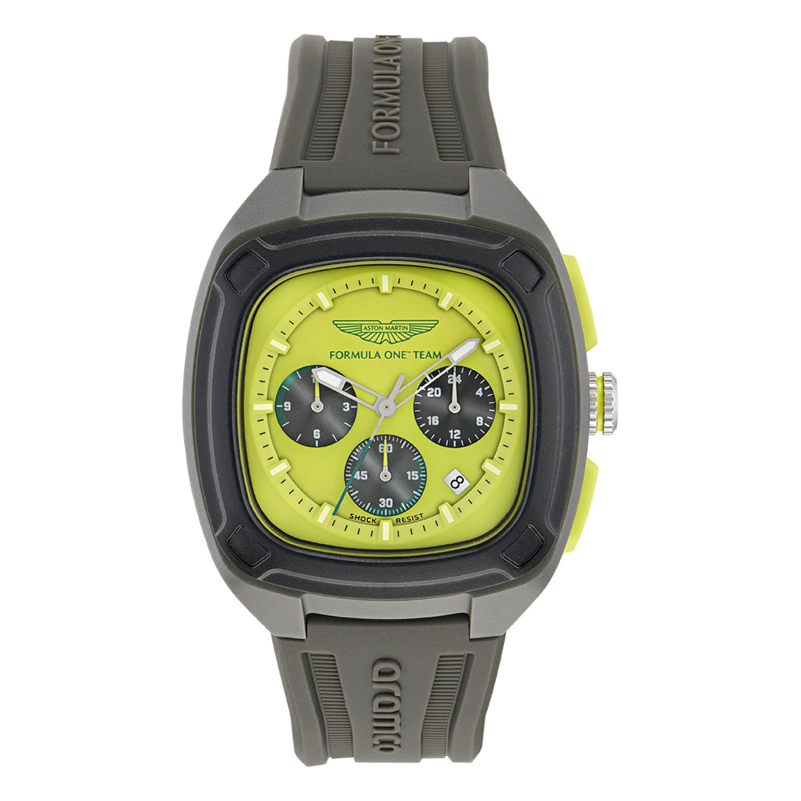 Aston Martin formula 1Grey Plastic Case, Yellow Dial, Grey Silicone Strap