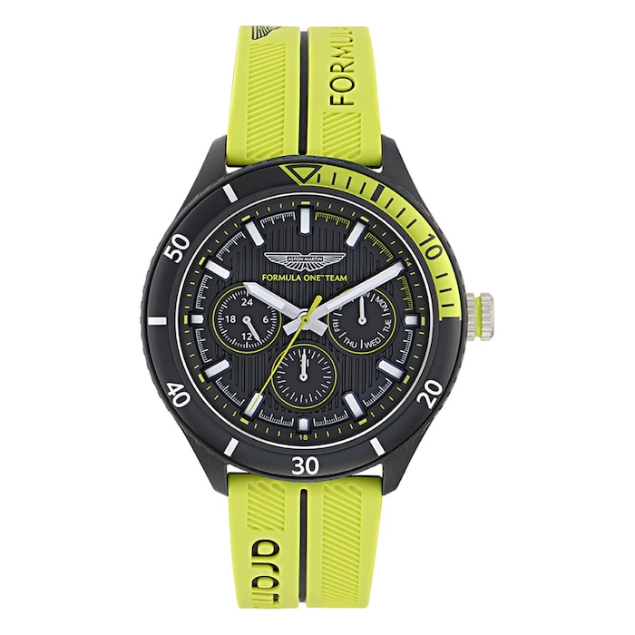 Aston Martin formula 1Black Plastic Case, Black Dial, Yellow and Podium Green Silicone Strap