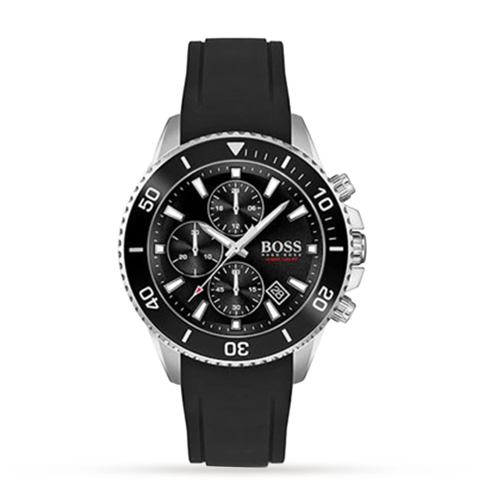 Part of the Admiral range from BOSS, this watch is a sleek design that's packed with functionality. The watch comes in a 46mm case with a rotating bezel and benefits from chronograph and date features. Secured with a rubber strap with BOSS branded buckle, the watch also features a sunray dial with simple indices and a push-button deployment. Great for diving, it is water-resistant up to 100m/10ATM and has luminescent hour and minute hands to ensure you can check the time no matter the light.