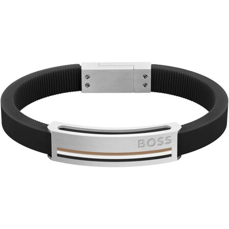 BOSS Sarkis mens black silicone bracelet.
