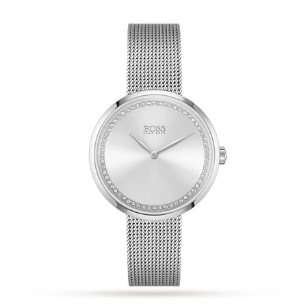 BOSS Praise Crystal Mesh Bracelet Strap Watch, Silver Ladies Watch 36mm MPN: 1502546