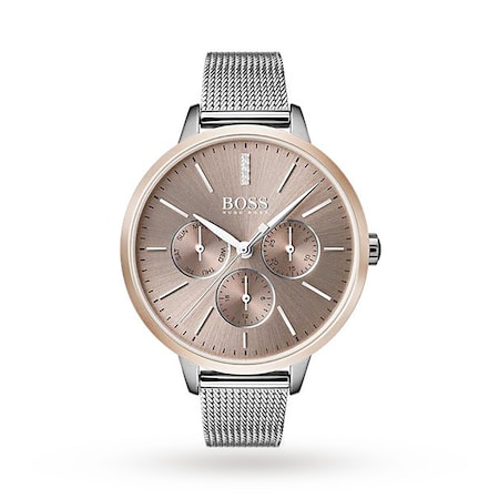 Founded in 1924, Boss has become one of the world's leading fashion brands, epitomising authentic, understated luxury. The Hugo Boss watch collection offers a sophisticated selection of timepieces which combine classic design with a contemporary finish. This BOSS Symphony Watch 1502423 features a 38 mm stainless steel case, showcasing a champagne dial and sapphire crystal glass. Powered by a quartz movement, this timepiece also incorporates a steel bracelet, finished with a pin buckle for added security. This timepiece is also water resistant to 10 Metres.