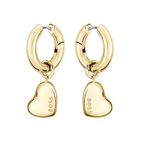 These earrings by BOSS Jewellery exude effortless chic with elegantly curved heart charms suspended from huggie hoops.