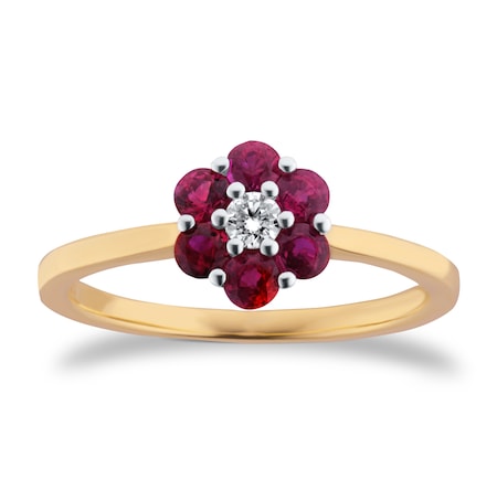 By Request 9ct Yellow Gold Ruby & Diamond Cluster Ring - Ring Size S.5 MPN: