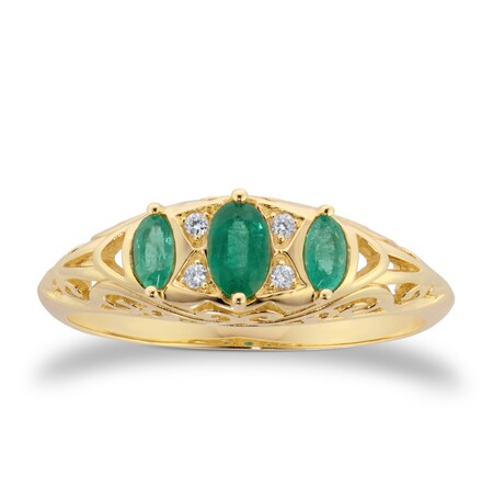 By Request 9ct Yellow Gold Victorian Style 3 Stone Emerald & Diamond Ring - Ring Size Y MPN: