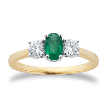 By Request 9ct Yellow and White Gold 3 Stone Emerald & Diamond Ring MPN: 56070421