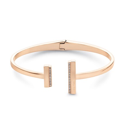 Calvin Klein womens rose gold coloured stainless steel bangle featuring a sleek linear silhouette with crystal settings.