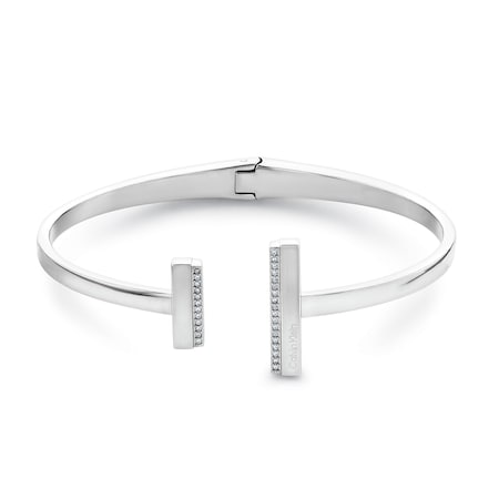 Calvin Klein ladies stainless steel bangle featuring a sleek linear silhouette with crystal settings.