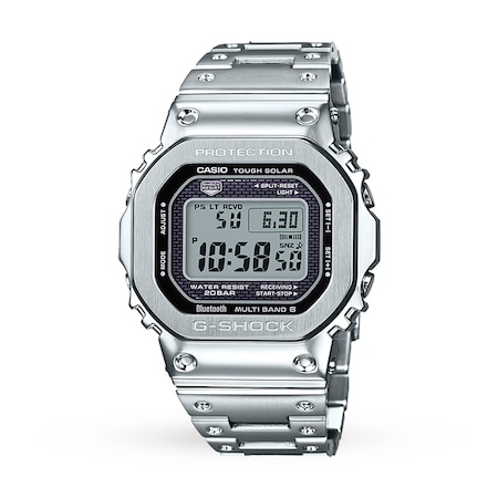 A scratch resistant glass lens is secured in a silver case. The GMW-B5000D-1ER watch, composed almost entirely of stainless steel, is completed in a smart, polished finish.