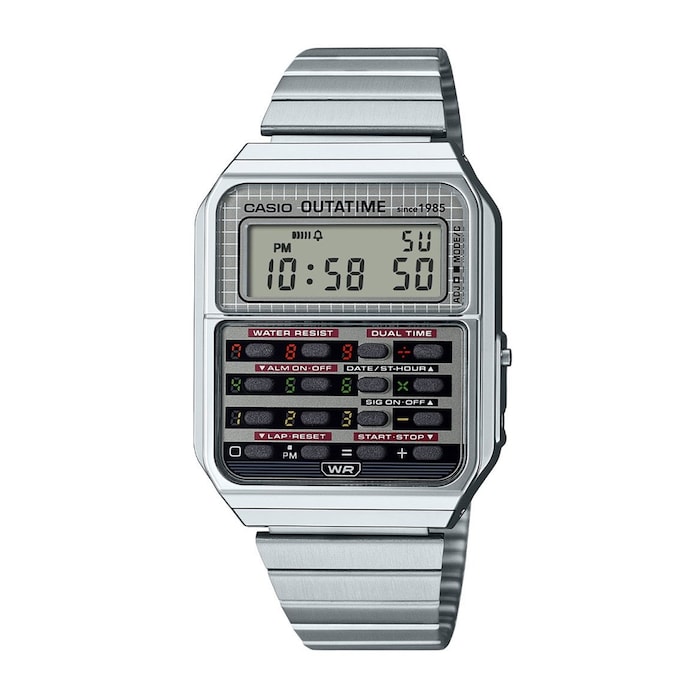 CASIO X Back To The Future – The Ultimate Time Machine on Your Wrist Great Scott! The iconic Casio calculator watch has returned from the future in this limited-edition tribute to one of the greatest film trilogies of all time. Marty McFly made the Casio CA-53 a legend when he wore it in Back to the Future. Now, 40 years later, CASIO honors that legacy with a reimagined version that transforms the cult-classic watch into a miniature DeLorean-esque time machine, crafted for true fans and collectors.