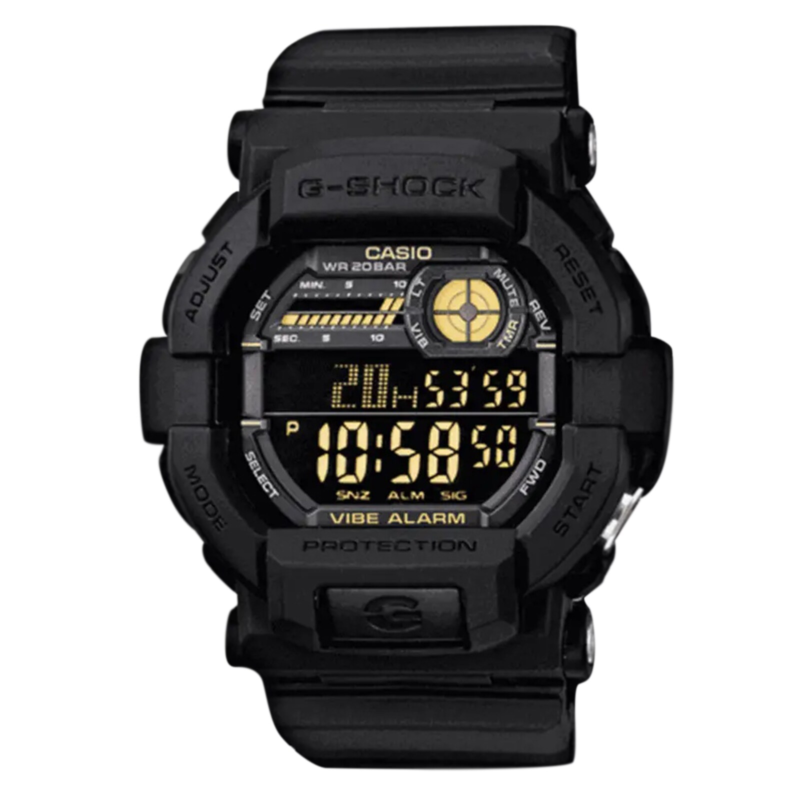 This new G-SHOCK is designed and engineered for those special dark, secret missions that demand something extra. The timer function is has a large, specially designed easily identifiable dedicated button for quick and sure operation under the toughest of conditions. When the timer reaches the end of its countdown, you can select to be alerted by either a vibration operation or a tone plus LED flash operation. The special shock absorber design of the back of the watch helps to ensure that vibration is felt by the wrist. A high luminance LED can be configured to light for one, three, or five seconds, and an Auto Light feature cause the face to illuminate whenever the watch is tilted towards the face for reading.