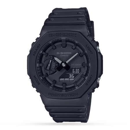 This stealthy, all black timepiece embeds the latest carbon core guard technology in a slimmer more refined case. Taking inspiration from the 1983 original model, the DW-5000C, this watch gives homage to the much loved retro look with its unique octagonal bezel, framing an analog-digital display. As with the GA-2000, the GA-2100 has an interchangeable resin strap for customisation with any outfit and occasion. Despite its deceptively compact design, this watch is as durable and tough as any G-SHOCK on offer with 200 meter water resistance and shock resistance.