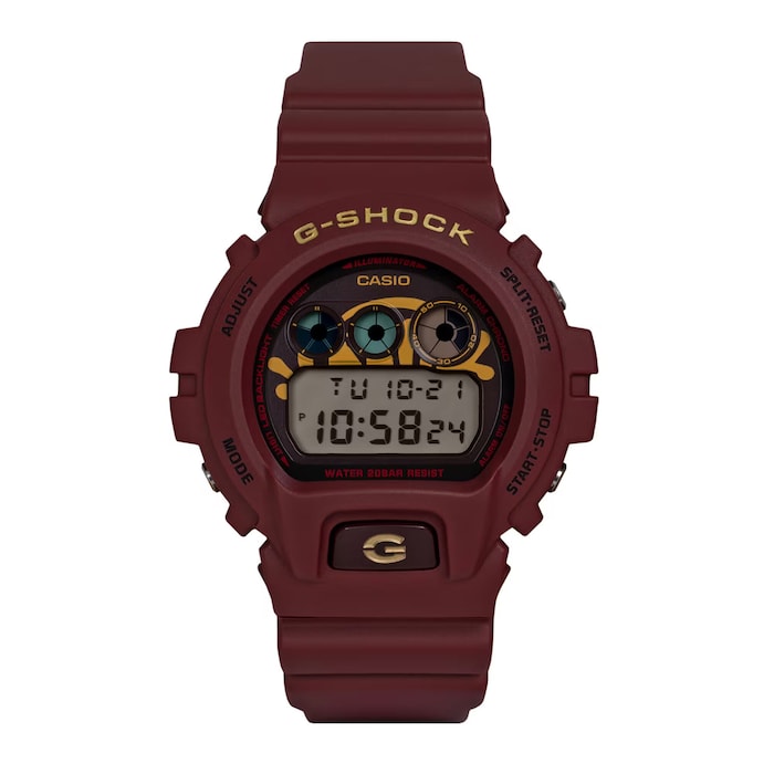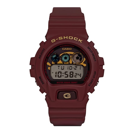 This product is excluded from voucher codes. The G-SHOCK x Syna collaboration embodies the fusion of resilience and style, capturing Central Cee’s journey and G-SHOCK’s legacy of innovation. Bold yet refined, it’s a statement piece for those that are #BuiltDifferent.. This official collaboration between Syna and G-SHOCK sees Central Cee reimagine the bold 6900 model, a personal favourite of his own. Fresh off a sold-out world tour, his design draws inspiration from a life in motion, featuring a deep Bordeaux red that nods to old British passports, now reworked onto the iconic 6900 silhouette. The watch also features the instantly recognisable Syna logo engraved on the case back, with another logo revealed on the dial when the backlight shines, adding a subtle yet striking signature touch to the timepiece.