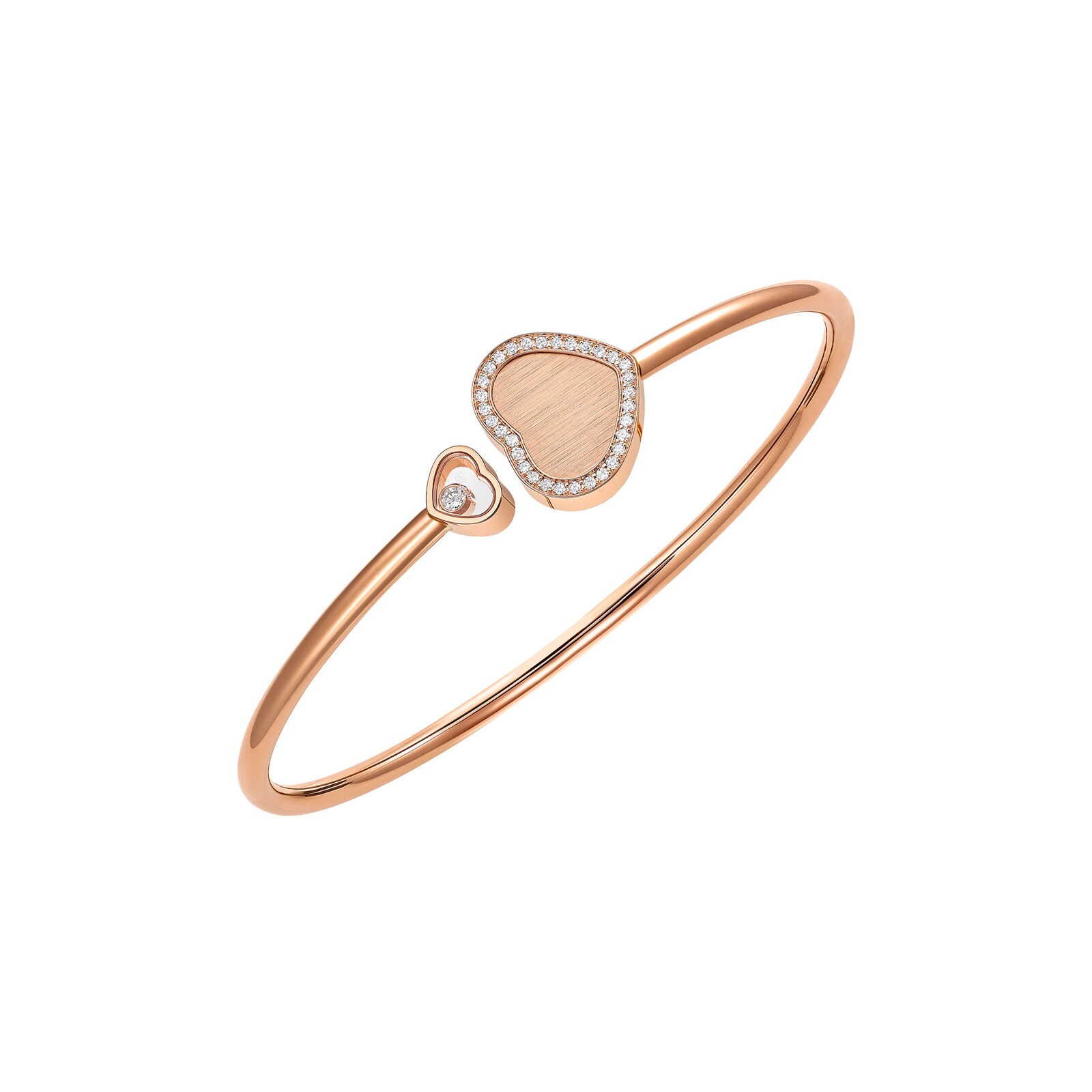 This new interpretation brings together two hearts, the larger filled with rose gold, referencing the frequent use of the precious metal in the iconic films. The smaller heart is set with a solitary floating diamond. Part of a limited edition collection of 7007 pieces.