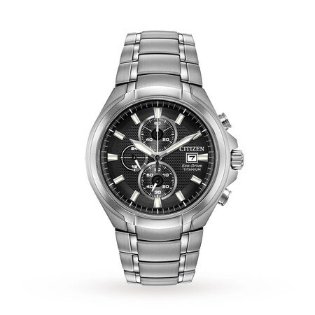 Intricate craftsmanship, stylish design and forward thinking technology characterise this watch from the Citizen Super Titanium Collection. With a classic look and Super Titanium construction which is more than five times harder than stainless steel as well as light and gentle on skin. Featuring sleek black dial with sapphire crystal glass, 100 metre water resistance and date display. Featuring a 1/5 second chronograph and Eco-Drive technology powered by light, any light. Never needs a battery.