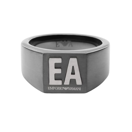 Emporio Armani Gun Metal Logo Ring - Ring Size V MPN: EGS2755060