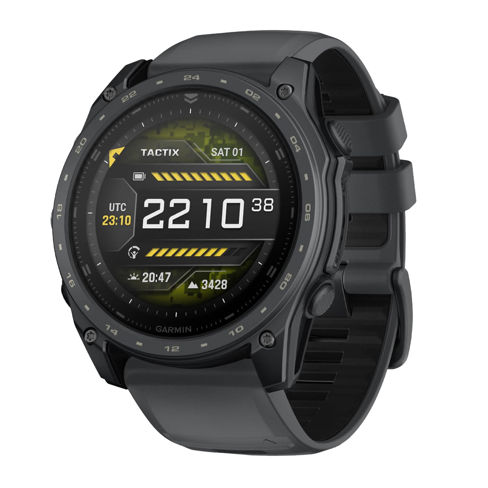 Rise above with tactix 8. It’s the ultimate tactical smartwatch, featuring a stunning AMOLED display, titanium bezel, sapphire lens, 40-metre dive rating and a premium Cerakote coating for enhanced durability in the field.
