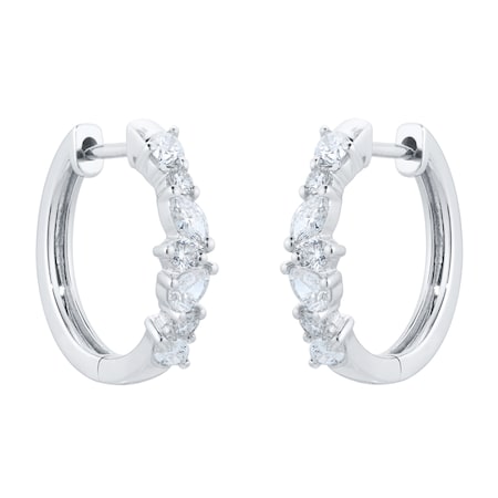 Adorned with a row of mixed cut diamonds, these easy-to-wear 18ct white gold huggie hoop earrings boast a unique sense of allure.