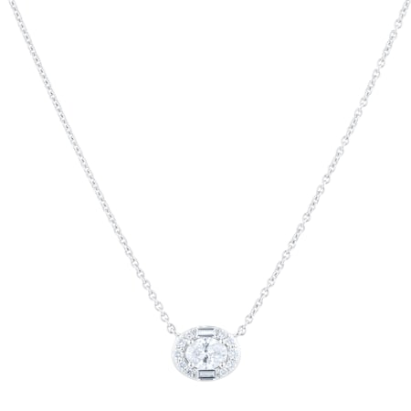 Crafted from 18ct white gold, this beautiful pendant necklace presents a glistening cluster of mixed cut diamonds with 0.42ct total carat weight, suspended from a delicate chain.