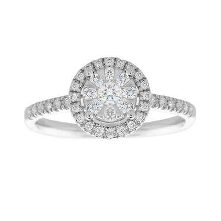 Goldsmiths 18ct White Gold 0.50ct Diamond Multi Stone Halo Ring - Ring Size J