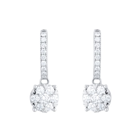 With a total diamond weight of 0.75ct, these hoop earrings feature clusters of round brilliant cut diamonds for added brilliance. The sleek white gold finish adds a contemporary touch, making them perfect for day or evening wear.