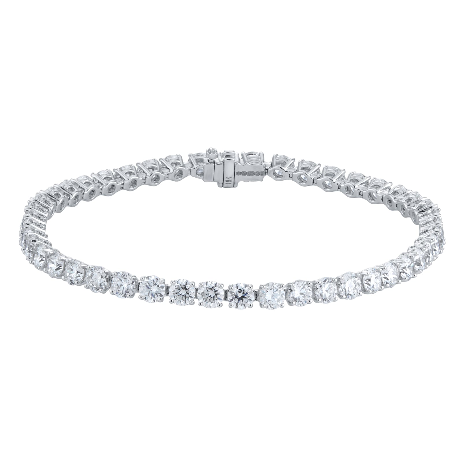 One of the most simplistic yet striking designs, a singular line of brilliant cut diamonds are set on 18ct white gold form to create a shining bracelet.