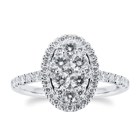 Goldsmiths 18ct White Gold 1ct Diamond Oval Cluster Engagement Ring