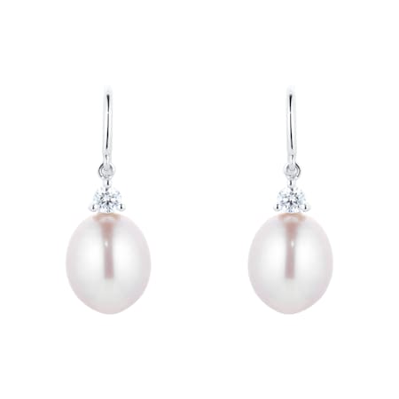 With 0.14 carat total weight, a freshwater pearl and a solitaire diamond are suspended delicately from an 18ct white gold earring.