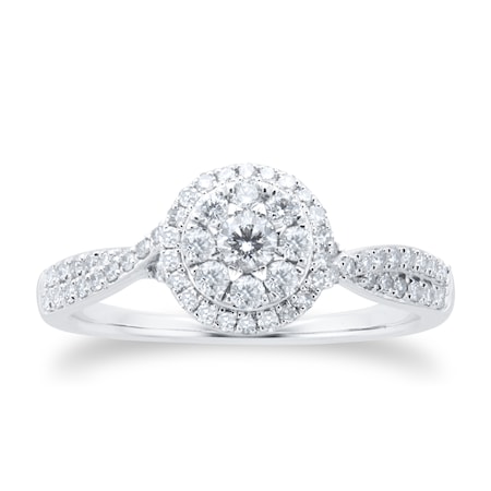Goldsmiths 18ct White Gold Round Diamond Cluster Engagement Ring