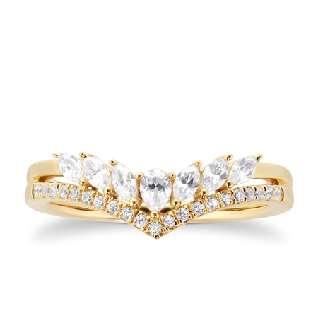 Goldsmiths 18ct Yellow Gold 0.40ct Diamond Pear & Marquise Double Row Wedding Band